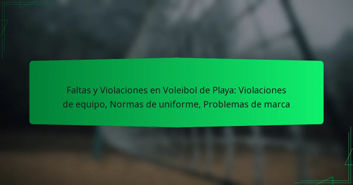El voleibol de playa está regido por reglas específicas sobre faltas y violaciones que pueden afectar significativamente el desarrollo del juego. Las áreas clave de preocupación incluyen violaciones de equipo, estándares de uniforme y problemas de marca, cada una de las cuales puede resultar en penalizaciones o interrupciones durante los partidos. Comprender estas regulaciones es esencial para que los jugadores mantengan la equidad y preserven la integridad del deporte.
